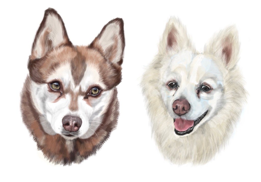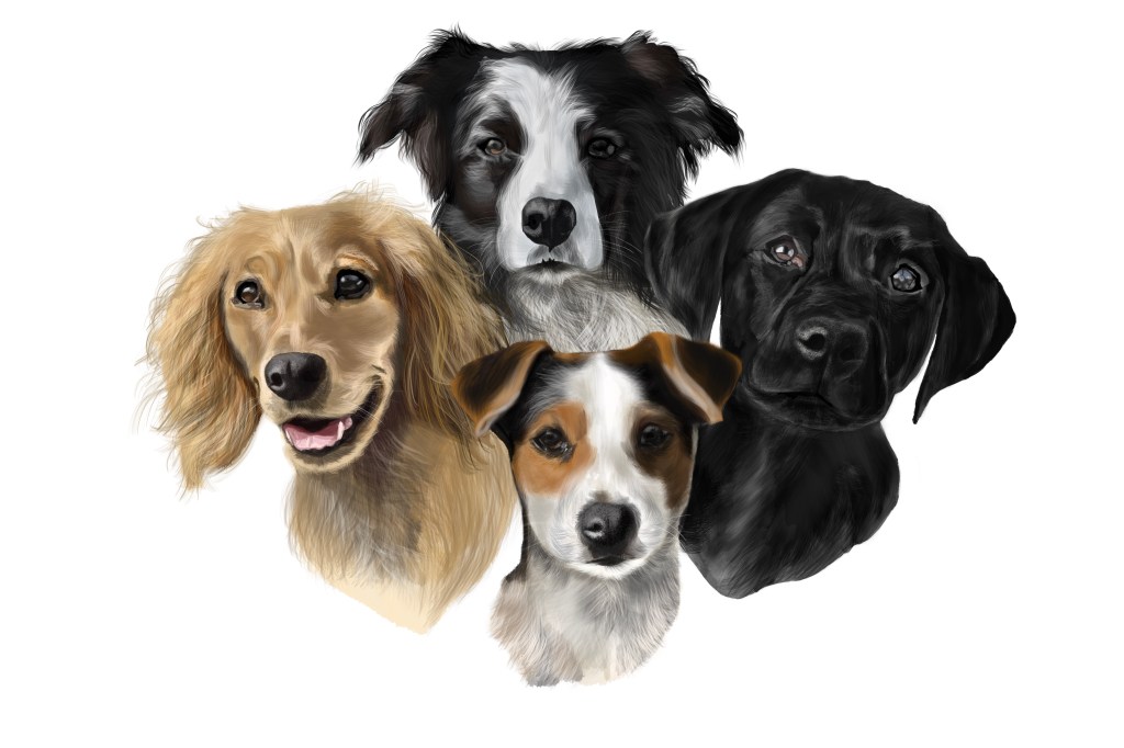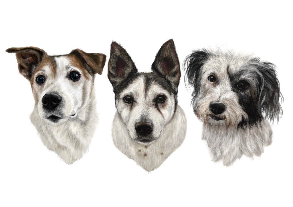 “A beautiful keepsake of our cherished dogs, two of whom we have sadly lost, but we can hold onto their memory forever with this print. The detailing is superb, and Meg has perfectly captured their unique personalities! Thank you so much, I love it.